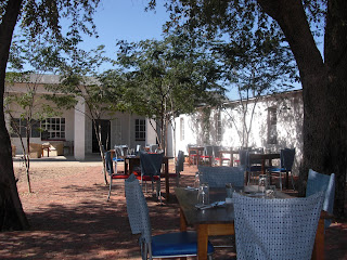 There is also a No. 1 Ladies' Opera house which recently opened. Chase, Finn and I went to it recently for brunch and we had a chance to meet the proprietor. The story goes that the idea for the place came about when he and Alexander McCall Smith, a friend, met over coffee last year and came up with the idea of Botswana's first Opera House. The site is beautiful, and they intend to stage full operas there twice a year. (Botswana has a rich history of traditional music.) The menu includes gems such as "Mma Makutsi's sweet pancakes" and "Malawian Mbatata Sim-sim balls."