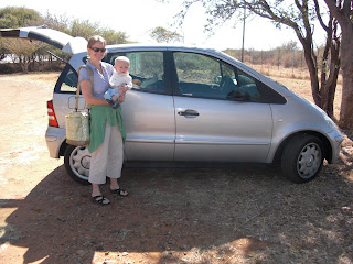 All I have to say is, "Watch out Gaborone!" Ian and I are now driving. I will begin by telling you why it is so great that we now have a car. First of all, no more taxis! You never know what kind of driver you will get when you call for a cab. I will give two examples. For a while we were using Strongman (English translation to his African name which I will not even try to type). He wasn't the friendliest most outgoing guy, but he was fairly reliable.....until last week. I called and asked if he could take me to the Sanitas Tea Garden (for play group) at 10:15. He said, "no problem." At 10:30 he still wasn't here so I called him. "Hi Strongman, just wanted to make sure that you are coming!"