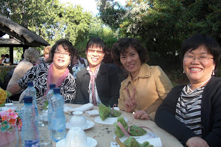 Somehow the word is starting to spread about Happy Home. More people are suddenly interested in getting involved. For example, last weekend several diplomatic women hosted a "high tea" as a fundraiser for Happy Home. To be honest, I wasn't thrilled about attending. I was happy to donate money - but I was anxious about the actual event. I'd never been to a high tea before. I wasn't going to know many of these women and wasn't sure if I'd be able to engage in genuine conversation. And of course....the wardrobe dilemna. It's winter here. The mornings and evenings are cold (about 40 degrees). The afternoons, however, reach the 70's. The tea was outdoors from 3-6, meaning half would be warm and the other half cold. I'm glad I didn't bail out! Even though I wasn't exactly in my comfort zone, I had a really nice time. It was really cool to see women from all over the world come together for this good cause. Each hostess sponsored a table and was responsible for selling tickets to women from her country. As I started to walk toward the "American" table, Esther grabbed me and said that I was sitting at her table. Talk about feeling relieved! Nothing against my fellow Americans, it was just nice to sit with Esther and some of her friends I've met by volunteering at Happy Home.